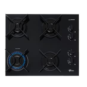 Cooktop a Gás Fischer 4 Bocas Fit Line Trempe Iron com mesa de vidro temperado e trempes esmaltadas.