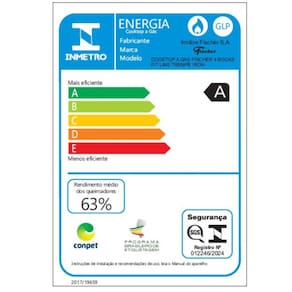 Caracteristicas: Bocas: 4 bocas Trempe: Aco esmaltado Acendimento superautomatico: Sim Tipo de gas -sai de fabrica GLP-: GLP Consumo de gas: 0,6001 Kg/h Funcionamento: Gas Potencia das Bocas: 1 rapidos -3.000W-, 3 semirrapidos -1.750W- Bocas seladas: Sim Inmetro: 012246/2024