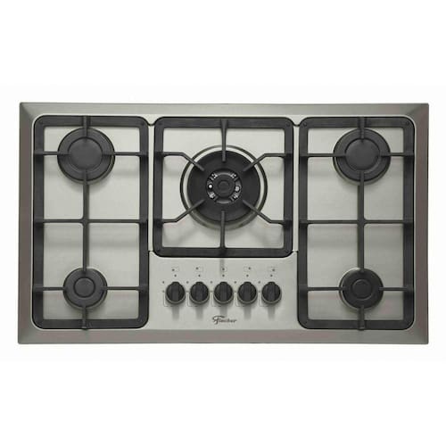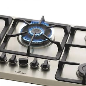 A gásCooktop a Gás Fischer 5 Bocas Tripla Chama Infinity com Trempe de Ferro Fundido Mesa Inox