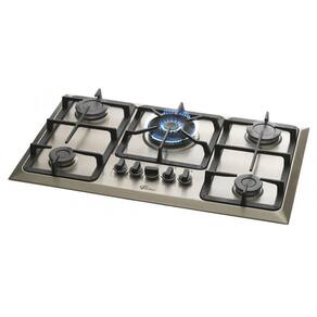 O cooktop possui 5 queimadores com tecnologia italiana de alta eficiência e durabilidade, sendo: 1 queimador tripla chama (3700W), 2 queimadores rápidos (2900W) e 2 queimadores semi-rápidos (1750W), todos com a câmara de gás fechada, o que evita que a chama se apague com facilidade.