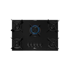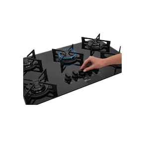 Cooktop a Gás Fischer 5Q Fit Line Trempe Iron Bivolt Preto com 5 bocas, mesa de vidro temperado, trempes em aço esmaltado e acendimento superautomático.Luz de calor residual