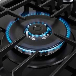 Cooktop Fischer Platinium com 5 bocas, tripla chama, acendimento superautomático, mesa de vidro temperado preto e trempes de ferro fundido.