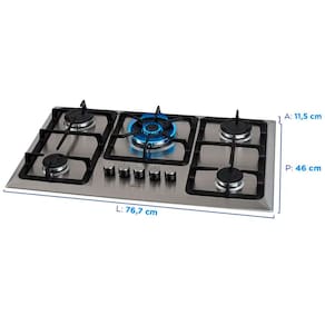 Ficha técnica: Marca: Fischer Modelo: 23678 54121 Tipo: Cooktop Quantidade de bocas: 5 bocas Acendimento: Superautomatico Material da mesa: Aco inox Funcionamento: GLP Tipo de queimadores: Tripla chama, rapido e semirapidos Material das trempes: Ferro fundido Tamanho do nicho: 62 x 36 cm Altura: 11.5 cm Largura: 76.7 cm Profundidade: 46 cm Peso: 9.9 kg Eficiencia energetica: A Potencia dos queimadores: Tripla chama 3700W, Rapido 2900W, Semirapido 1750W Consumo: 0.966 kg/h Frequencia: 60 Hz Codigo de barras: 7896513317734 Origem: Nacional Garantia: 1 ano -3 meses de garantia legal mais 9 meses de garantia do fabricante- Conteúdo da embalagem: 1 cooktop Fischer e manual de instruções