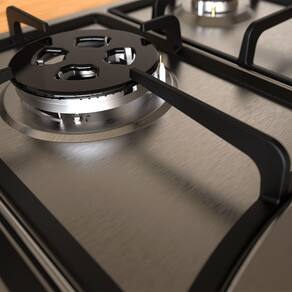 Queimador Italiano: Os queimadores dos cooktops Oster são de origem italiana com tradição em qualidade, eficiência e segurança, pois possuem sistema Flameout Safety protection: dispositivo na mesa que corta automaticamente o gás caso a chama apague.