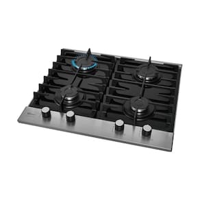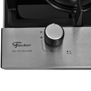 Cooktop a Gás Fischer Platinium com 4 bocas, mesa de vidro, trempes duplas em ferro fundido e acendimento superautomático.Luz de calor residual