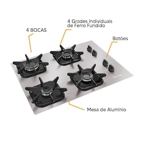 Cooktop a Gás Mueller 4 Bocas com Ultra Chama e Acendimento Automático – Bivolt