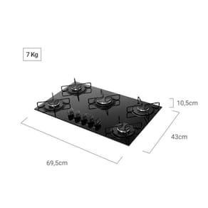 Caracteristicas: Acabamento da Mesa Vidro Temperado Botoes Removiveis Comprimento do Cabo de Energia 96 cm Dimensoes do Nicho -largura x altura x profundidade- 61,5 x 20 x 36 cm Eficiencia Energetica A Fabricacao Nacional Funcionamento Gas Numero de registro 0006111/2014 Padrao de Tomada 10A Potencia dos Queimadores 4Q Semirrapidos de 1,65 kw e 1Q Mega Chama de 2,85 kw Quantidade de Bocas 5 Bocas Tipo de Acendimento Superautomaticol Trempes Individual de arame com 4 pontos de apoio