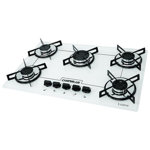 Cooktop Chamalux 5 Bocas Ultra Chama Branco Bivolt Fogão cooktop ultra chama 5 bocas branco chamalux bivolt Cód: 88