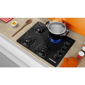 O Cooktop 4 Bocas a Gás de Vidro Temperadoé ideal para você. Com uma base em vidro preto temperado, é lindo e muito fácil de limpar. Possui quatro queimadores muito eficientes: um rápido e três semirrápidos, garantindo agilidade no cozimento das suas receitas preferidas.