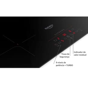 Cooktop Dako Supreme 4 Bocas Indução Preto 220 V O Cooktop de Inducao Supreme foi desenvolvido para os apaixonados por modernidade e tecnologia que nao abrem mao de seguranca e praticidade quando o assunto e cozinhar. Caracteristicas: Travas de seguranca: Sim Vitroceramico: Sim Com Touch Screen: Sim Detector de Intens: Sim Niveis de Potencia: 9 Niveis por zona de cocccao Potencia dos Queimadores: 4 zonas de 1,5 kW, sendo 2 zonas com turbo para 2 kW (dianteira esquerda e traseira direita) Timer Digital: Sim Acendimento: Touch Screen