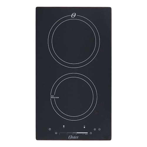 Cooktop de indução Oster com 2 bocas, 14 níveis de potência, função Booster, painel Touch Screen, Timer até 99 minutos e trava de segurança.Luz de calor residual