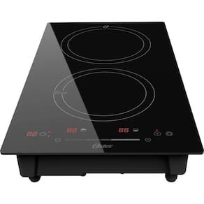 Cooktop de Indução Elétrico Oster com 2 bocas, 14 níveis de potência, painel touch screen, função booster, timer de até 99 minutos, pode ser embutido ou utilizado como portátil.Luz de calor residual