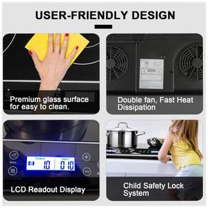 Cooktop de Indução Duplo Portátil Duxtop com display LCD, 110V, 1800W, controles touch, sistema de trava de segurança, eficiente em energia e compatível com utensílios de fundo magnético.Alimentação