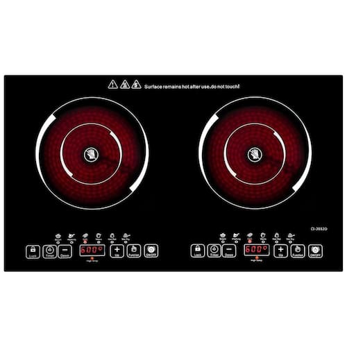 Design Prático e Durável: O fogão possui um painel de cristal preto, à prova d'água e à prova de umidade, facilitando a limpeza e manutenção. A construção em vidro cerâmico de indução temperado e ABS garante durabilidade e resistência.