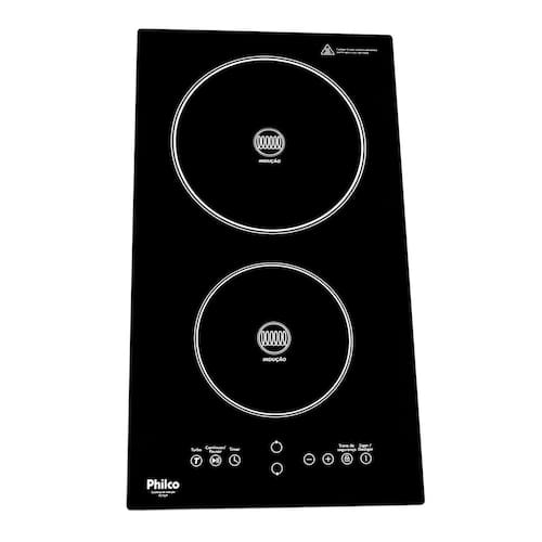 O Cooktop de Indução Philco PCT02P 2 Bocas Turbo tem 9 níveis de potência e Funções Turbo, Pausa, Trava de painel e Timer.