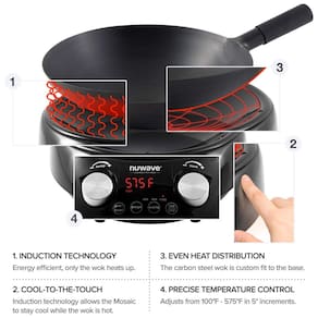 A base de indução Mosaic foi projetada para garantir que toda a superfície do wok em aço carbono de 35 cm com a superfície de indução, aquecendo de forma rápida e uniforme, sem pontos quentes ou frios. Sem chamas abertas, o Wok de indução cozinha mais rápido, praticamente sem desperdício de calor e de forma mais segura do que qualquer wok tradicional.