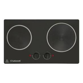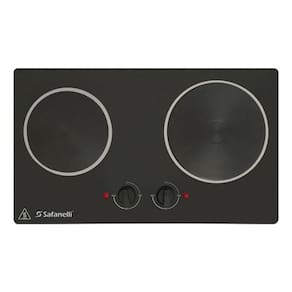 Cooktop elétrico de embutir com 2 bocas, 2500W, mesa em aço carbono, acabamento em inox, termostato com 3 níveis de temperatura, luz piloto, voltagem 220V.Alimentação