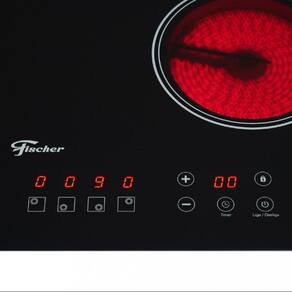 Cooktop Fischer Elétrico com mesa vitrocerâmica, controle touch screen, 4 queimadores elétricos, 9 níveis de potência, timer e indicador de superfície quente.Luz de calor residual