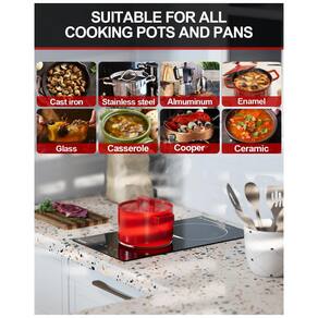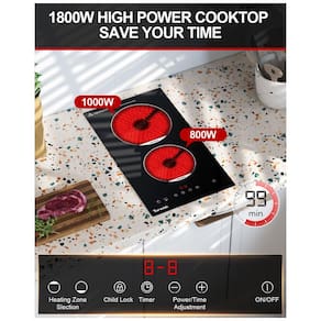Este cooktop elétrico de 110v com plugue de 30,48 cm é perfeito para quem busca praticidade, pois dispensa a necessidade de um eletricista para instalação. Compatível com panelas de diversos materiais, como ferro, aço inoxidável, cerâmica, vidro e outros resistentes a altas temperaturas. Com 2 queimadores, um de 1000W e outro de 800W, oferece 9 níveis de potência para cozinhar, ferver, cozinhar no vapor, refogar e muito mais. Além disso, conta com funções de segurança como trava para crianças, timer de até 99 minutos, desligamento automático, aviso de calor residual e pausa. Seu design moderno em vidro cerâmico preto é fácil de limpar e muito resistente. Verifique a compatibilidade antes de comprar.