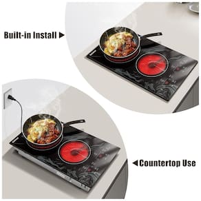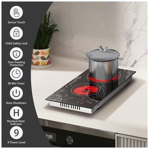 A superfície com Padrão de Ondas Belíssimo deste cooktop elétrico de 2 bocas da Karinear certamente irá te encantar. Esta é a versão aprimorada do fogão elétrico Karinean, com um padrão de ondas no vidro que o torna ainda mais elegante. Adquira este cooktop elétrico de 30 cm com padrão de ondas e deixe sua cozinha mais especial e menos monótona. As bocas não permanecem vermelhas o tempo todo, elas ciclam para ficar vermelhas. Cooktop Elétrico de 110-120V com Plugue de Tomada. Este cooktop elétrico com plugue é adequado para 110-120V, basta conectá-lo à tomada de sua casa e estará pronto para cozinhar, sem a necessidade de um eletricista para fazer a instalação. A potência do cooktop elétrico de 2 bocas é de 1400W e 600W. As bocas grandes possuem 19 níveis de calor ajustáveis, enquanto a boca pequena tem duas opções: "L" para baixo e "HI" para alto. A boca pequena é ideal para aquecer café e leite ou manter os alimentos aquecidos. Uso no Balcão ou Instalação Embutida. Preocupado em como instalar este cooktop elétrico de 30 cm? Não se preocupe, este é um cooktop elétrico portátil, com suporte na parte inferior, podendo ser utilizado diretamente sobre o balcão. Claro, se você tiver um recorte do tamanho certo em sua cozinha, pode instalá-lo embutido. O cooktop elétrico embutido economiza espaço e proporciona um visual mais bonito e sofisticado. Cooktop Multifuncional e Seguro. Se você procura um cooktop elétrico de 2 bocas multifuncional, nosso modelo atende perfeitamente às suas necessidades. Equipado com diversas funcionalidades como timer de 99 minutos, desligamento automático, trava de segurança infantil, função pausa, aviso de alta temperatura e proteção contra superaquecimento. Pode ser utilizado com panelas de ferro, aço inoxidável, cerâmica, vidro, cobre, entre outros. Cooktop de Vidro, Fácil de Limpar. A superfície deste cooktop elétrico de vidro é lisa e fácil de limpar, basta passar um pano úmido. A Karinear inclui uma espátula de limpeza de presente para ajudar na limpeza. Certifique-se de esperar o aviso de alta temperatura desaparecer antes de limpar, para evitar queimaduras. com nossos vendedores se tiver alguma dúvida sobre o produto.