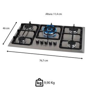 - São 5 bocas com tecnologia italiana de alta eficiência e durabilidade, sendo: 1 boca com tripla chama (3700W), 2 bocas rápidas (2900W) e 2 bocas semi rápidas (1750W), todos com a câmara de gás fechada, ou seja, a chama não se apaga com facilidade.