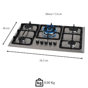 - Potência das Bocas: 1 tripla Chama (3700W), 2 rápido (2900W) e 2 semi-rápido (1750W)