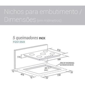 Cooktop Fogão De Mesa 5 Bocas Inox À Gás FG5135IX - Suggar