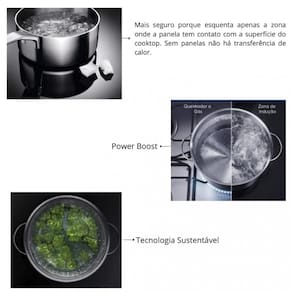 O Cooktop de Indução Electrolux 4 bocas com PowerBoost IE6LP combina alta potência e segurança para suas experiências gastronômicas. A função PowerBoost agiliza o preparo das receitas, permitindo ferver a água até duas vezes mais rápido. A Tecnologia de Indução aquece apenas a área de contato da panela, tornando o uso mais seguro. Com uma mesa de vitrocerâmica lisa e resistente, a limpeza é facilitada e as panelas têm mais estabilidade. Este cooktop também é sustentável, reduzindo a emissão de CO2 em até 80. Equipado com 9 níveis de potência, oferece controle preciso da temperatura para resultados culinários ótimos. Possui função Timer, duas opções de uso -embutido ou portátil-, trava de segurança, indicador de calor residual, função pausa, painel Full Touch e sensor inteligente que detecta a posição e adequação das panelas.