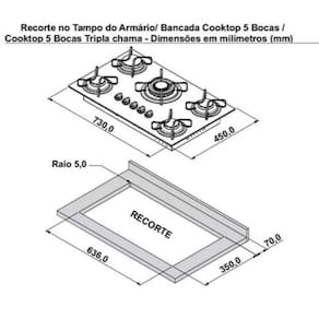 - Peso líquido - produto sem embalagem (Kg) | 5 bocas: 12,1Kg