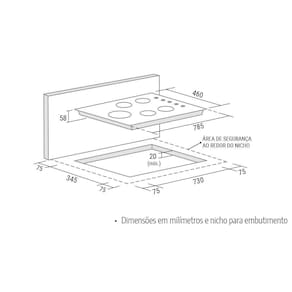 Possui lindo design em vidro temperado na cor preta, e 5 boca com acendimento à gás superautomático e chama tripla lateral.