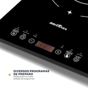 Com funções inteligentes como reconhecimento automático de panelas e desligamento de segurança em caso de superaquecimento, o Cooktop Portátil de Indução Britânia BCT10A une tecnologia, eficiência e estilo em um só produto, oferecendo conveniência e tranquilidade no dia a dia.