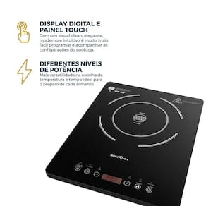Cooktop portátil de indução com painel digital touch, controle de temperatura e timer programável.Luz de calor residual