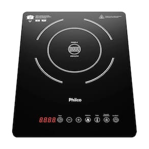 Cooktop portátil por indução Philco Pct12p com 1 boca, bivolt, mesa de vidro vitrocerâmico, timer até 180 minutos e 10 níveis de temperatura.Luz de calor residual