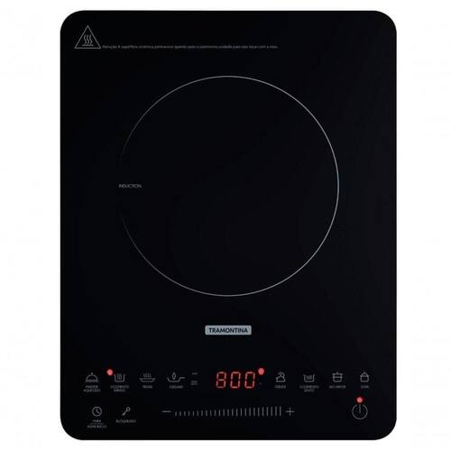 Modo de uso: O Cooktop Portátil por Indução funciona ;em 220 V, não é bivolt. Não utilize o cooktop com panelas de diâmetro superior a 260 mm. Não utilize o cooktop sobre superfícies metálicas como por exemplo, pias e bancadas de aço inox. Não bloquear as aberturas de entrada e saída de ar, a fim de evitar danos no aparelho. O cooktop portátil por indução, não deve ser instalado embutido. Nunca utilizar a mesa vitrocerâmica como superfície de trabalho ou para apoiar objetos. Se for percebida qualquer rachadura na mesa vitrocerâmica, desligar imediatamente o produto e desconectar da rede elétrica. Pessoas que utilizam marca-passo e próteses metálicas devem consultar um médico antes de utilizar o cooktop por indução. Colocar sempre a panela no centro da área de aquecimento. Para o correto funcionamento do cooktop é necessário que o fundo das panelas contenha materiais de indução magnética, ou seja, metal ferroso. As panelas mais indicadas são as de aço inox ou de ferro. As panelas utilizadas no cooktop por indução devem ter o fundo plano, para que fiquem em contato com toda a área de aquecimento. Utilize um imã para verificar se a panela é adequada para o cooktop por indução. Se o imã for atraído pela base da panela, esta é apropriada para este tipo de aparelho. Panelas que não devem ser utilizadas: barro, vidro, alumínio, cerâmica, cobre e outros materiais não magnéticos. A limpeza da superfície vitrocerâmica deve ser realizada sempre com ela fria. Entretanto, quando objetos plásticos, folhas de alumínio, e alimentos que em sua composição contenham açúcar, entrarem em contato com a superfície vitrocerâmica aquecida, será necessário retirar estes resíduos enquanto ela estiver quente, utilizando uma esponja macia umedecida com água. Após a superfície vitrocerâmica esfriar, poderá não ser possível remover estes resíduos derretidos (açúcar, plástico ou papel alumínio). Para uma limpeza perfeita a Tramontina disponibiliza a venda da pasta de limpeza, para polir e remover manchas em superfícies de vidro / vitrocerâmicas.