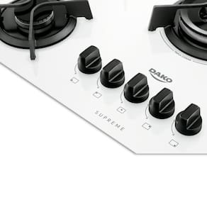 O Cooktop Supreme a gás é ideal para quem ama cozinhar e impressionar, combinando design moderno e potência. Com uma mesa de vidro branco resistente e fácil de limpar, suas grades de ferro fundido oferecem estabilidade e segurança. O sistema Girou, acendeu permite acender a Mega e Tripla Chama rapidamente, otimizando o tempo de preparo. Os botões removíveis facilitam a limpeza, enquanto os queimadores selados evitam a entrada de resíduos.
