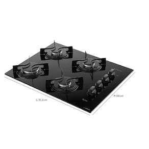 Cooktop Atlas U Top 4 bocas com mesa de vidro temperado, acendimento superautomático, trempes em aço esmaltado, queimadores rápido e semirrápido e eficiência energética A.Alimentação