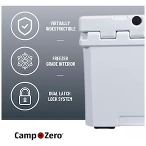 Refrigerador premium rotomoldado praticamente indestrutível com sistema de travamento e tampa texturizada sem deslizamento com 4 porta copos moldados. Espessura de parede aprimorada com junta de grau de freezer para retenção de gelo superior e também compatível com gelo seco. Certificado Grizzly para ser resistente a ursos quando com as fechaduras apropriadas, fechaduras não incluídas. Cooler Inclui canais de amarração moldados para proteger seu cooler para todas as suas aventuras Ruggedly Cool. Pés de borracha antiderrapante reversível de grandes dimensões ou pés de nylon duro e compatível com gelo seco. Comporta até 48 latas, 40 Litros Marca: Não Informado