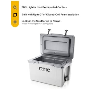 30 MAIS LEVE QUE ROTOMOLDADO O RTIC Ultra Light Hard Cooler 52 Litros foi projetado para ser mais de 30 mais leve que os coolers rotomoldados de mesma capacidade. Perfeito para qualquer lugar que a aventura o leve. DE ISOLAMENTO Com até de isolamento de espuma de célula fechada, este refrigerador isolado tem tudo a ver com extremos. Seus alimentos e bebidas ficarão mais frios e por mais tempo nesta caixa de gelo. RETENÇÃO DE GELO DE LONGA DURAÇÃO Este refrigerador portátil é feito para portabilidade, durabilidade e retenção de gelo de longa duração. As dimensões são Comprimento , Largura , Altura . MÚLTIPLOS USOS É o refrigerador de gelo perfeito, refrigerador de bebidas, refrigerador de viagem, refrigerador de cerveja, refrigerador de lata, refrigerador de acampamento, refrigerador de praia, refrigerador de barco ou refrigerador de churrasco. Pode ser transportado por uma pessoa. MODELO DE 52 Litros Este refrigerador externo de 52 litros é de tamanho real. Ele vem com um divisor removível e cesto superior. Pode dobrar como um banco, escadinha, mesa ou tábua de corte extra Marca: Não Informado