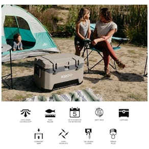 A construção moldada por sopro resistente oferece durabilidade avançada. Paredes de espuma extra grossas e tampa isolada fornecem cinco dias de retenção de gelo. As travas em T duráveis e emborrachadas da tampa fornecem um fechamento e travam no frio. Alça de garra de ponto triplo com reforço de aço inoxidável e alça de borracha. O plugue de drenagem rosqueado oferece a opção de conectar sua mangueira de água para facilitar a drenagem Marca: Não Informado