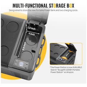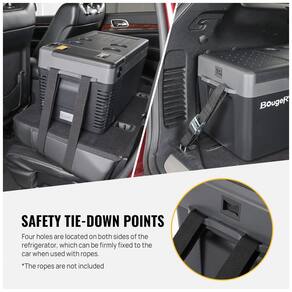 Caixa de zenamento generosa acomoda perfeitamente a estação de energia e acessórios O refrigerador CRPRO de 21 litros possui uma caixa de zenamento multifuncional onde você pode colocar a NOVA ESTAÇÃO DE ENERGIA PORTÁTIL para geladeiras ou os cabos de carregamento equipados dentro, o que aumenta o tempo de uso da geladeira e evita a falta de cabos. Pesquise BougeRV 220WH PORTABLE POWER STATION na se estiver procurando. 4 pontos de amarração de segurança fixa a geladeira ao seu carro Através de quatro orifícios localizados em ambos os lados da geladeira CRPRO, ela pode ser presa com segurança com cordas na caminhonete, assento e outras superfícies escorregadias. Não precisa se preocupar com o movimento da geladeira quando você dirige o carro. Modo Max e Eco Usage menor consumo de energia Com a tecnologia de refrigeração por compressor CRPRO, a geladeira 12 volts consome 45W no modo Max e apenas 36W no modo Eco, contribuindo para a economia. Este refrigerador atualizado também adiciona uma luz LED interna para você usar à noite. Você também pode usar esta geladeira para fazer compras e manter os alimentos frescos. Baixo ruído sono silencioso O freezer do caminhão foi projetado com 45dB de baixo ruído para garantir que você durma bem após uma longa viagem. Este refrigerador de camping também possui um design à prova de choque para enfrentar a estrada irregular, operando sem problemas em caso de inclinação de 30 quando você estiver fora da estrada Marca: Não Informado
