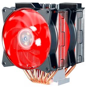 olá tudo bem? somo a best games trazemos sempre o melhor do mundo dos games entre jogos, consoles, acessórios e muito mais não compre antes de perguntar se o produto está disponível Garante um bom funcionamento do seu CPU com este cooler da Cooler Master; Adicione até 3 ventiladores para acelerar a pressão do ar e remover o calor com o 'Push and Pull'. O dissipador de calor de torre dupla possui uma combinação de 2 conjuntos de torres de dissipador de calor com 2 conjuntos de MasterFan MF120R RGB. Projetado com uma combinação de motor a jato e pás de helicóptero para a pressão estática do ar necessária sem sacrificar o fluxo de ar. Possui 6 tubos de calor para transferência rápida de calor, para garantir que a CPU esteja funcionando com desempenho ideal. Velocidade do ventilador: 600-1800 RPM ± 10% Tipo de cooler: Air Cooler