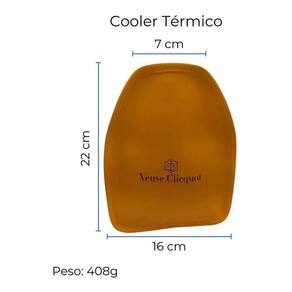 O cooler é uma bolsa de gel térmico, revestido em tecido texturizado impermeabilizado, que se adapta a diversos tipos de garrafas.