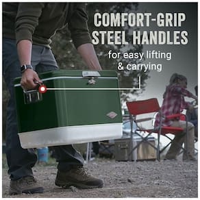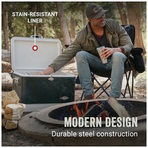 O refrigerador de alta capacidade e resistente apresenta um design retrô encantador. A capacidade de 54 litros acomoda até 85 latas A tampa Have a Seat suporta até 110 kg. Mantém o isolamento de gelo oferece retenção de gelo de 4 dias. Construído para oferecer anos de desempenho com hardware de aço inoxidável resistente à ferrugem. Alças de aço de aderência confortável permitem levantamento e transporte fáceis e controlados Marca: Não Informado