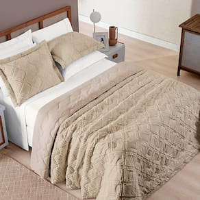 Coordenado Cobre Leito E Cobertor Tok Max Queen Ultrasoft Alto Relevo Dupla Face - Cáqui
