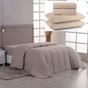 Coordenado Edredom E Lençol Queen Sereno Em Malha 5 Peças - Cáqui - 100% Algodão