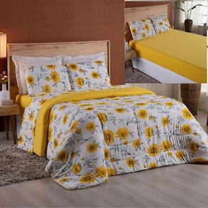 Conforto Superior: O Edredom é acolchoado, ideal para todas as estações do ano. O lençol com elástico ajusta-se perfeitamente ao colchão, proporcionando noites de sono tranquilas e confortáveis.
