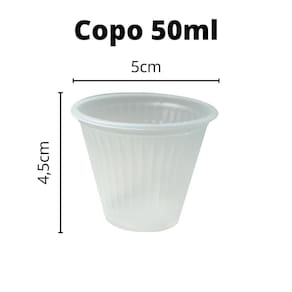 Material: Poliestireno PS - Atóxico Capacidade: 50 ml Cor: Disponível em Transparente ou Branco Quantidade: 100 Copos