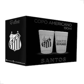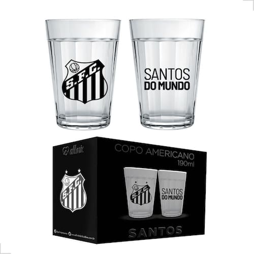 Especificações técnicas: - Times: Santos - Kit com 2 copos americanos de 190ml cada - Material: Vidro de qualidade - Formato: Americano - Capacidade líquida: 190ml - Ideal para bebidas quentes e frias