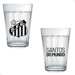 Especificações técnicas: - Times: Santos - Kit com 2 copos americanos de 190ml cada - Material: Vidro de qualidade - Formato: Americano - Capacidade líquida: 190ml - Ideal para bebidas quentes e frias