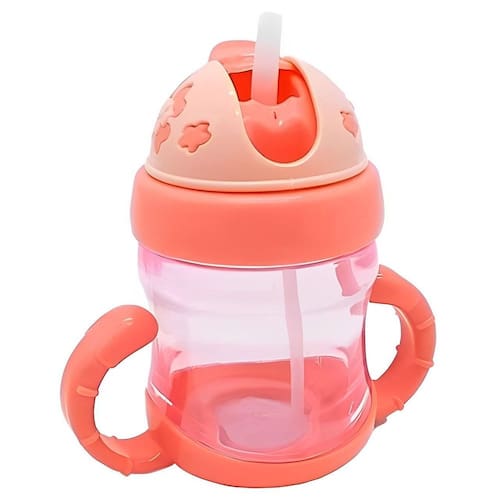 Copo antivazamento com alça canudo treinamento infantil, copo antivazamento, com canudo curvado que permite beber até a última gota, promove desenvolvimento oral saudável, possui formato ergonômico e é fácil de ser segurado por mãos pequenas.